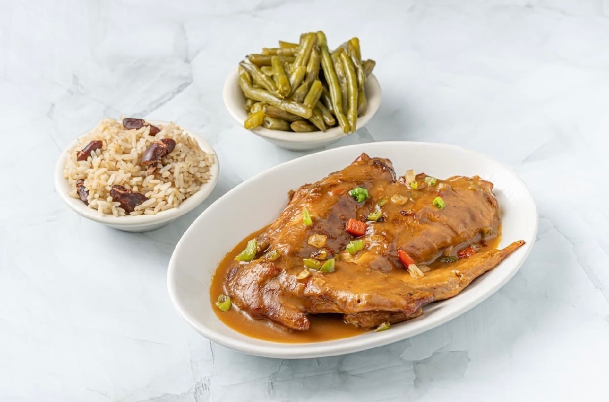 famous chicken and waffles, and smoky pulled pork. In addition to our regular offerings, we have daily specials like smothered turkey wings and stewed oxtails. We also serve a variety of sweet treats, including peach cobbler, banana pudding, and seven different cake flavors.